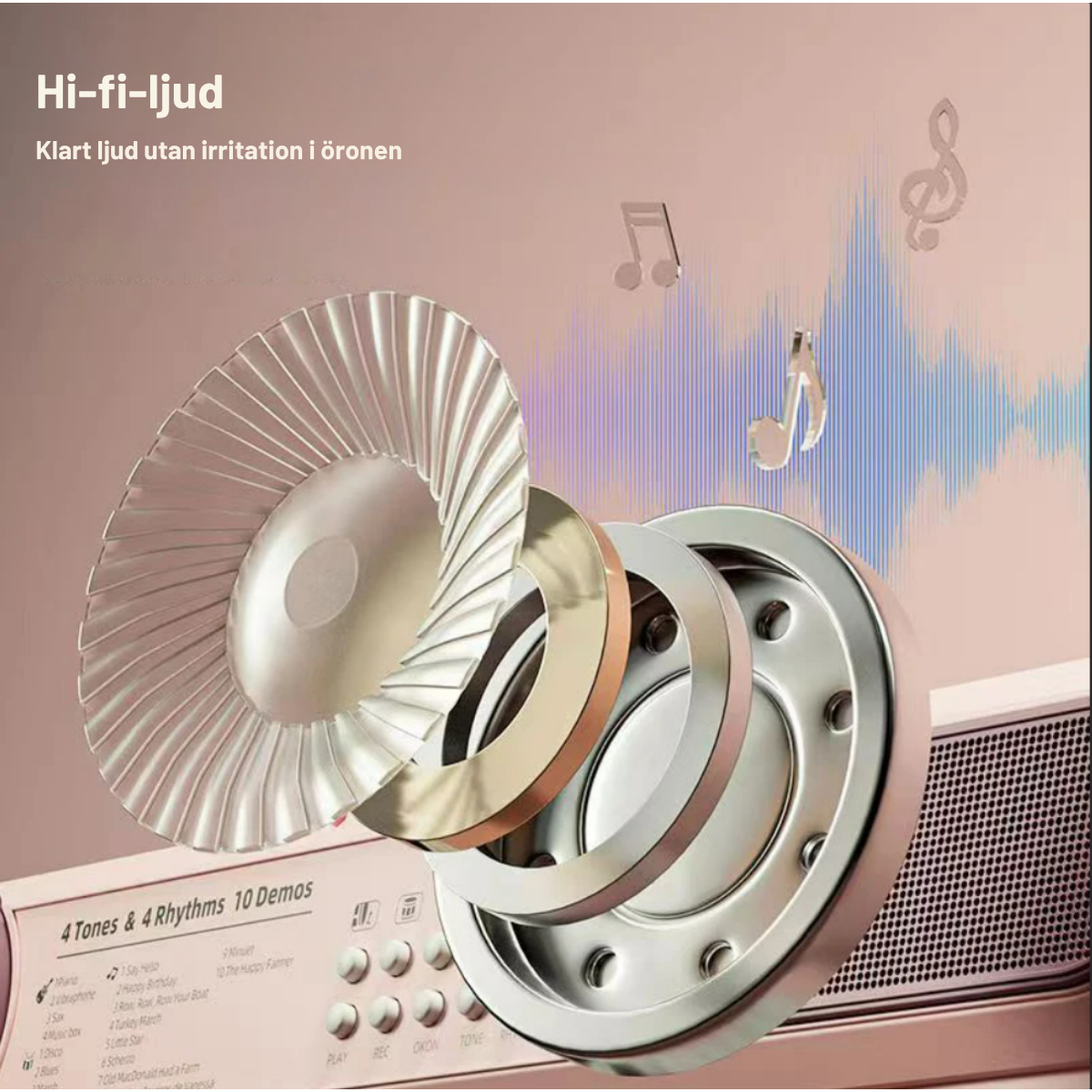 Barnpiano Keyboard 37 Tangenter är ett perfekt musikaliskt leksaksinstrument för barn som vill utforska musik och kreativitet. Med multifunktionella knappar, inbyggda rytmer och melodier samt en mikrofon för sång blir lärandet både roligt och utvecklande. Pianot är tillverkat i slitstark plast och är utformat för tidig musik- och rytmutbildning, vilket gör det till en fantastisk present för barn i olika åldrar.