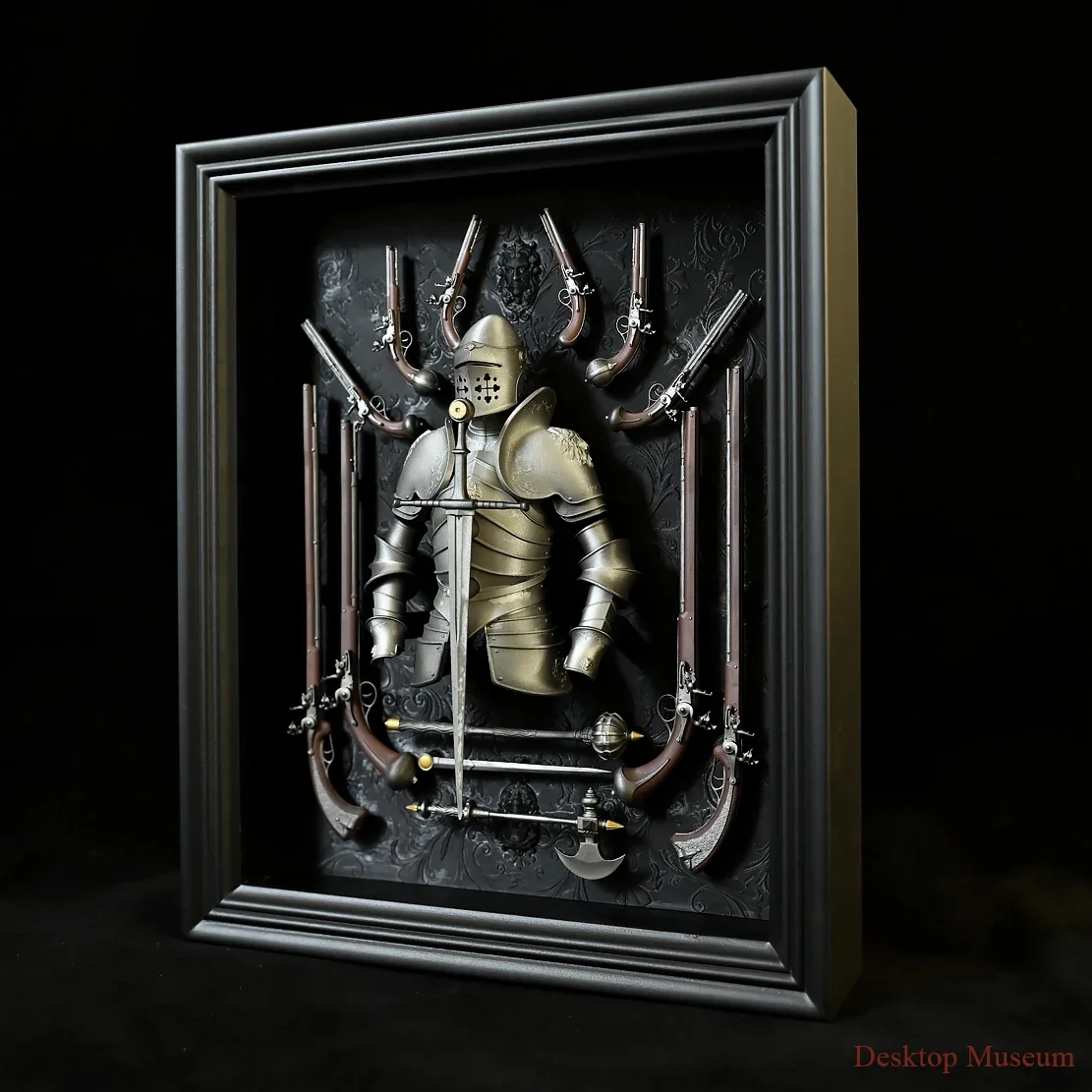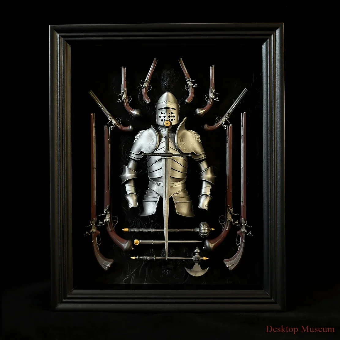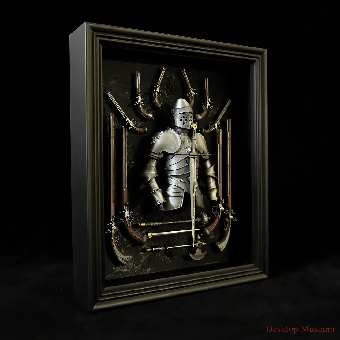 Skapa en unik historisk känsla i ditt hem eller kontor med Europeisk Riddarrustning i Ram – Väggdekoration i Resin. Denna handgjorda dekoration visar en detaljerad europeisk riddarrustning med klassiska vapen, elegant inramad för att bli en iögonfallande väggprydnad. Perfekt för samlare, historiefantaster eller som exklusiv present.