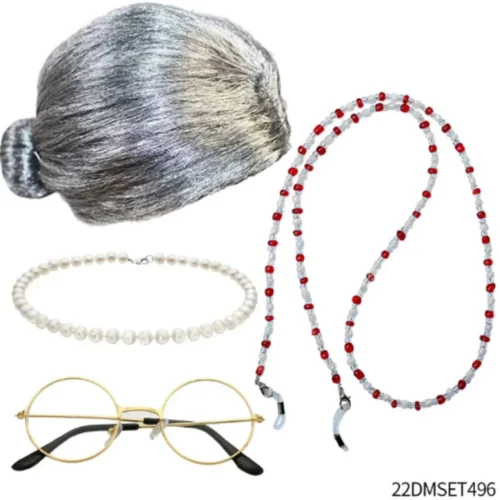 Kombinera detta tillbehörspaket med en bekväm klänning eller kjol för att komplettera mormorslooken. För en fulländad dräkt kan du även addera en fin sjal, ett pärlhalsband eller en handväska. Skapa en rolig och minnesvärd utklädnad som garanterat blir en hit på kalaset eller temafesten.