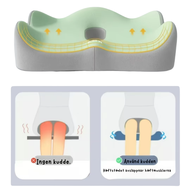 Denna Sittdyna Minnesskum Ergonomisk är tillverkad i minnesskum och designad för att ge stöd i sittande position. Produkten är avsedd för användning i bil och kontorsmiljö.